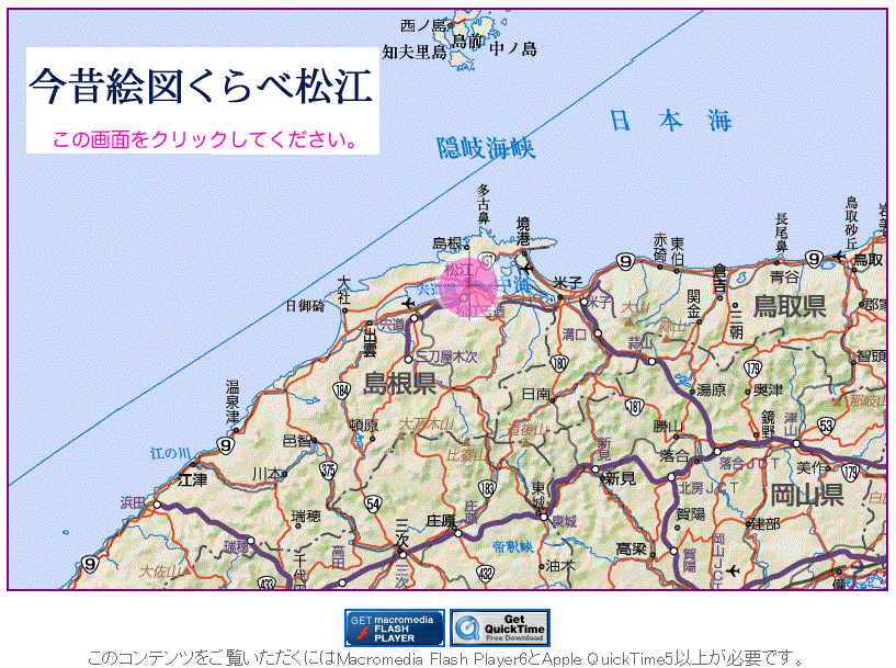 左上のタイトル「今昔絵図くらべ松江」をクリックすると中表紙に戻ります。
