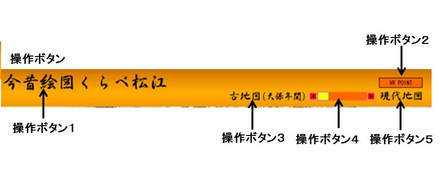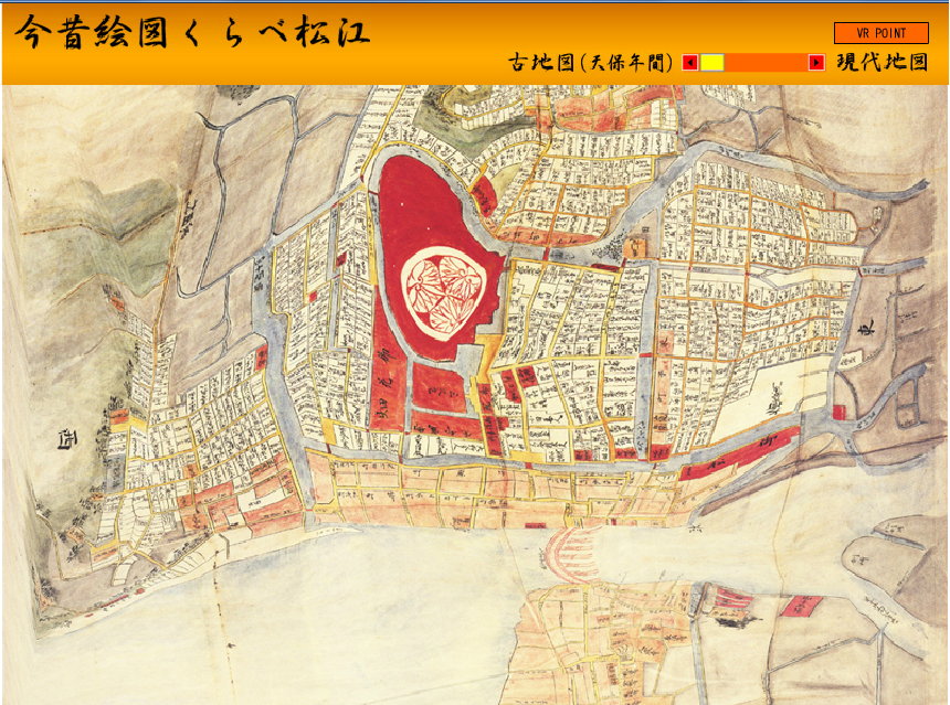 右上の上のボタン「VR POINT」は松江の観光スポットの360°ビューです。
